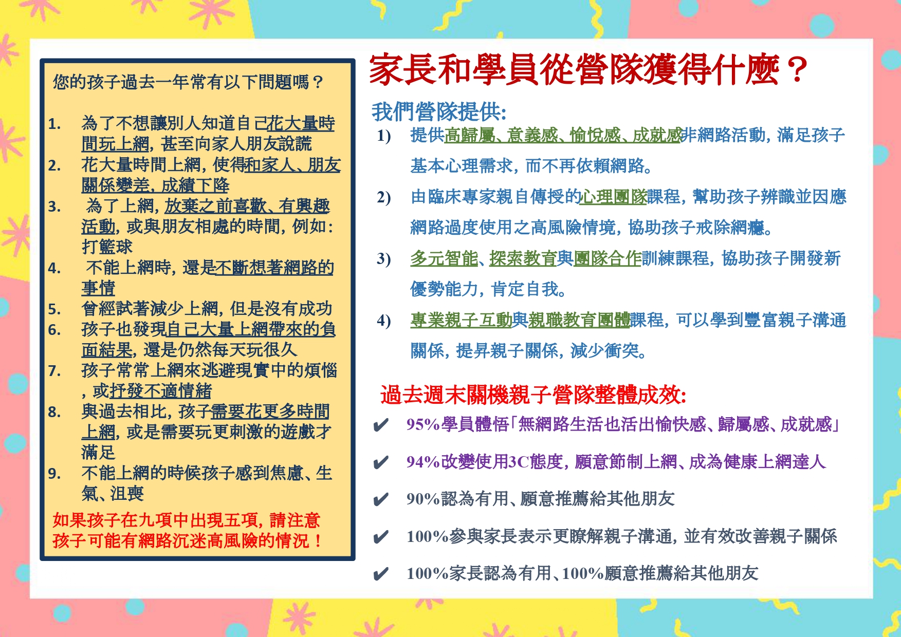 🔸營後三次親子一日工作坊時間暫定為6/2(日)、8/25(日)、10/20(日)